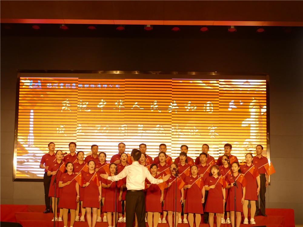 活動(dòng)在全體合唱《歌唱祖國(guó)》的歌聲中達(dá)到高潮。集團(tuán)公司主要領(lǐng)導(dǎo)登臺(tái)同全場(chǎng)員工舞動(dòng)起鮮艷的五星紅旗,共同歌唱祖國(guó),歌唱美好的新時(shí)代。