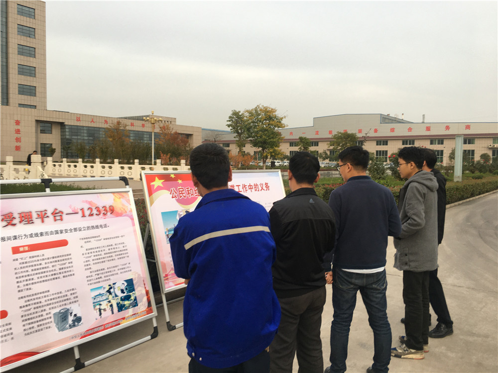 公司通過LED屏滾動播放宣傳標語,大門兩側懸掛橫幅標語,制作《反間諜法》宣傳版面,發(fā)放《反間諜法》宣傳彩頁700余份等多種形式的廣泛宣傳,營造了“國家安全,人人有責”的濃厚氛圍,進一步提高員工反間諜安全防范知識,使維護國家秘密,保護國家安全意識不斷加強。