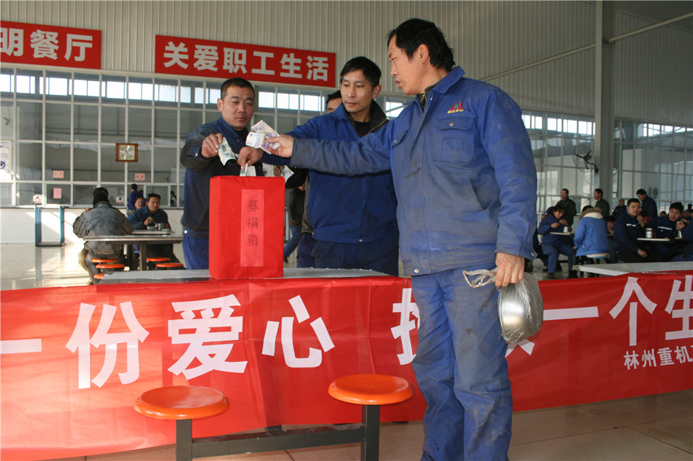 11日上午,公司工會立即發(fā)出募捐倡議書。下午二點在公司辦公樓前舉行了募捐儀式并現(xiàn)場募集。公司總經(jīng)理郭釧代表公司捐款10000元,公司董事韓錄云代表其家人捐款10000元,其他公司領(lǐng)導及機關(guān)部室、分子公司管理人員紛紛捐款,特別是與郭保紅素不相識、在我公司施工的深圳市朗奧潔凈科技股份有限公司捐款3000元,河南派普建工集團有限公司捐款1000元,供應商延津縣熱處理廠張東??吹侥季杌顒右簿杩?00元,短短不到半個小時募集捐款近4萬元。更值得一提的是原林州重機集團員工張國華,也是腎病患者,曾經(jīng)得到過林州重機捐款資助的他看到朋友圈的消息后,也委托朋友捐款10元,他說:我也是一名尿毒癥患者,我也曾經(jīng)得到過林州重機的捐助,現(xiàn)在我雖然還在治療之中,但我也要盡我一點心意。多么樸實的話語,多么善良的員工,一方有難八方支援,真正體現(xiàn)出了我們林州重機是一個互助友愛的大家庭。12日中午,公司工會又在職工食堂舉行第二次募捐活動,累計募捐善款 42337元。