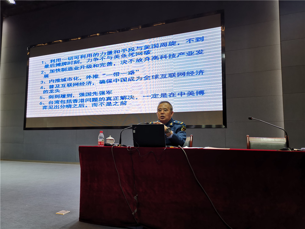 15日下午,喬良將軍在公司一樓多功能廳做了《從百年大變局看中美貿(mào)易戰(zhàn)》專題講座,公司中高層領(lǐng)導(dǎo)及管理人員、部分員工骨干300余人聆聽(tīng)了報(bào)告。喬良將軍從中美貿(mào)易戰(zhàn)的深層次背景與本質(zhì)、特朗普為何要發(fā)動(dòng)貿(mào)易戰(zhàn)、特朗普面對(duì)的悖論、中國(guó)的對(duì)策與路徑四個(gè)方面進(jìn)行了鞭辟入里、深入淺出的精彩講授。通過(guò)對(duì)中美貿(mào)易戰(zhàn)的熱點(diǎn)分析中,使大家對(duì)中國(guó)改革開(kāi)放40年的偉大成就、中華民族的偉大復(fù)興及復(fù)興之路的戰(zhàn)略選擇有了全面和深入的理解。一方面,提升了全員的民族自豪感和對(duì)中華民族偉大復(fù)興的堅(jiān)定信念;另一方面,堅(jiān)定了公司開(kāi)展民參軍業(yè)務(wù),順應(yīng)中國(guó)發(fā)展需求,實(shí)現(xiàn)軍工報(bào)國(guó)的決心。